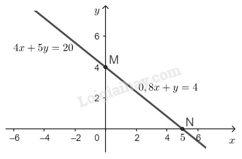 – Ta có \(4x + 5y = 20\) \( \Leftrightarrow y = -0,8x + 4\)