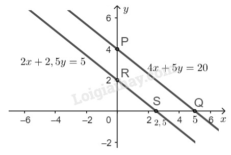 Đường thẳng \(2x + 2,5y = 5\) là đường thẳng đi qua hai điểm \(R,\ S\).