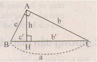 +) Dùng hệ thức giữa cạnh góc vuông và hình chiếu của nó trên cạnh huyền \(b^2=b’.a;\ c^2=c’.a\), biết hình chiếu \(b’,\ c’\) và cạnh huyền \(a\), tính được \(a,\ b\).