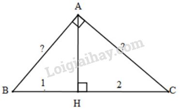 Xét \(\Delta{ABC}\) vuông tại \(A\), đường cao \(AH\), \(BH=1,\ CH=2\). Ta cần tính \(AB,\ AC\).
