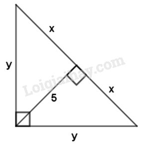 Do các tam giác tạo thành là những tam giác vuông cân nên \(x = 5\) và \(y = \sqrt {{5^2} + {5^2}}  = 5\sqrt 2 \)