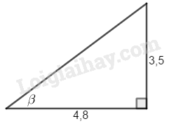 Ta có: \(tan\beta  = \dfrac{3,5}{4,8} = \dfrac{35}{48}\)