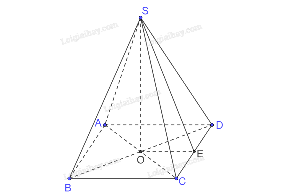 Gọi \(AC \cap BD = \left\{ O \right\}\) mà S.ABCD đều nên \(SO \bot \left( {ABCD} \right)\)