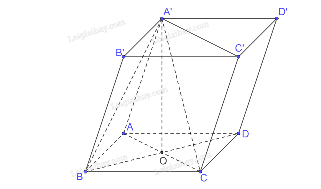 Gọi \(AC \cap BD = \left\{ O \right\}\) mà A’.ABCD là hình chóp đều nên \(A’O \bot \left( {ABCD} \right)\)