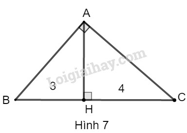 Giả sử tam giác ABC có: \(\widehat {BAC} = {90^0},\)\(AH \bot BC,BH = 3,CH = 4\)
