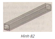 Một bóng đèn huỳnh quang dài \(1,2m\). đường kính của đường tròn đáy là \(4cm\), được đặt khít vào  một ống giấy cứng dạng hình hộp (h82). Tính diện tích phần cứng dùng để làm hộp.