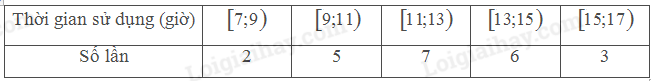 Để kiểm tra thời gian sử dụng pin của chiếc điện thoại mới, chị An thống kê thời gian sử dụng điện thoại của mình từ lúc sạc đầy pin cho đến khi hết pin ở bảng sau: