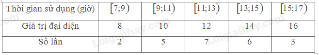 • Thời gian sử dụng trung bình từ lúc chị An sạc đầy pin điện thoại cho tới khi hết pin là: \(\bar x = \frac{{2.8 + 5.10 + 7.12 + 6.14 + 3.16}}{{23}} \approx 12,26\) (giờ)