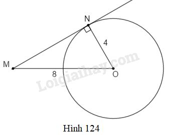 Giải bài 7 trang 196 sách bài tập toán 9. Cho đường tròn (O;4cm) và một điểm M sao cho OM = 8cm. Kẻ tiếp tuyến MN với đường tròn (O), N là tiếp điểm (h.124)…