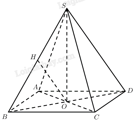 a) Kẻ \(OH \bot SB\left( {H \in SB} \right)\)