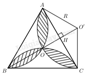 Trong một tam giác đều \(ABC\; (h.13),\) vẽ những cung tròn đi qua tâm của tam giác và từng cặp đỉnh của nó. Cho biết cạnh tam giác bằng \(a,\) tính diện tích hình hoa thị gạch sọc.