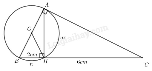 Cho tam giác \(ABC\) vuông ở \(A\) và đường cao \(AH.\) Vẽ đường tròn tâm \(O\) đường kính \(AB.\) Biết \(BH = 2cm\) và \(HC = 6cm.\) Tính: