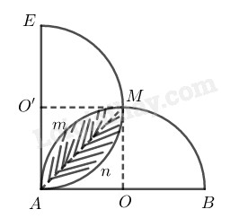 Diện tích phần chung của hai nửa hình tròn bằng diện tích hai quạt tròn có cung \(\overparen{AmM}\) trừ đi diện tích hình vuông