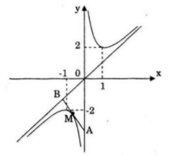 Tiếp tuyến của đường cong (C) tại điểm \(M\left( {{x_o};f\left( {{x_o}} \right)} \right)\) cắt tiệm cận đứng và tiệm cận xiên tại hai điểm A và B. Chứng minh rằng M là trung điểm của đoạn thẳng AB và tam giác OAB có diện tích không phụ thuộc vào vị trí điểm M trên đường cong (C).