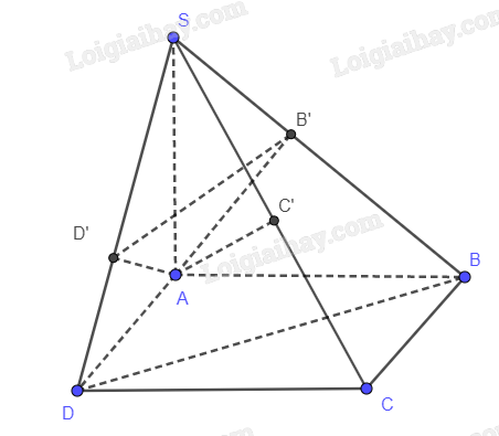 b) Mặt phẳng \(\left( \alpha  \right)\) đi qua A và vuông góc với cạnh SC lần lượt cắt SB, SC, SD tại B’, C’, D’. Chứng minh B’D’ song song với BD và AB’vuông góc với SB.