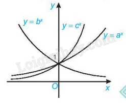 Cho đồ thị ba hàm số mũ (y = {a^x},y = {b^x}) và (y = {c^x}) như trong hình vẽ dưới đây