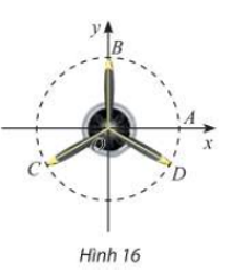 Vậy các điểm B, C, D trên cánh quạt động cơ máy bay trong Hình 16 có thể được biểu diễn cho các góc lượng giác
