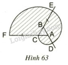a) Vẽ lại hình tạo bởi các cung tròn xuất phát từ đỉnh \(C\) của tam giác đều \(ABC\) cạnh \(1 cm\). Nêu cách vẽ (h.63).