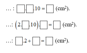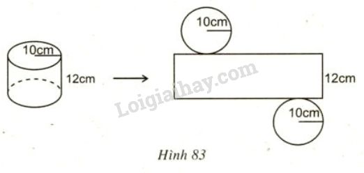 Diện tích xung quanh là: \((2.\pi .10).12 = 240\pi {cm^2}).\)
