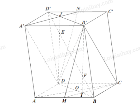 b) Gọi E, F lần lượt là giao điểm của đường thẳng D’B với các mặt phẳng (A’DN), (B’CM). Chứng minh rằng \(D’E = BF = \frac{1}{2}EF\)