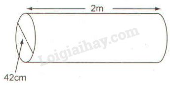 Một cái trục lăn có dạng một hình trụ. Đường kính của đường tròn đáy là \(42cm\), chiều dài trục lăn là \(2m\) (h. 91).