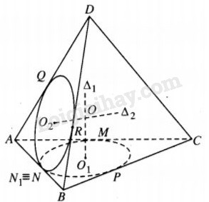 Từ đó \({\Delta _1}\) cắt \({\Delta _2}\) tại O, đó là điểm cách đều năm cạnh AB, AC, BC, AD, BD của tứ diện ABCD hay