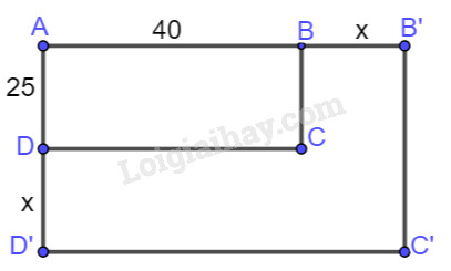 Sau khi tăng kích thước của mỗi chiều, ta được hình chữ nhật \(AB’C’D’\) có chiều dài \(AB’=\left( {40 + x} \right)\) cm, chiều rộng  \(AD’=\left( {25 + x} \right)\) cm.