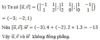Do đó \(\overrightarrow u ,\overrightarrow v ,\overrightarrow {\rm{w}} \) đồng phẳng.