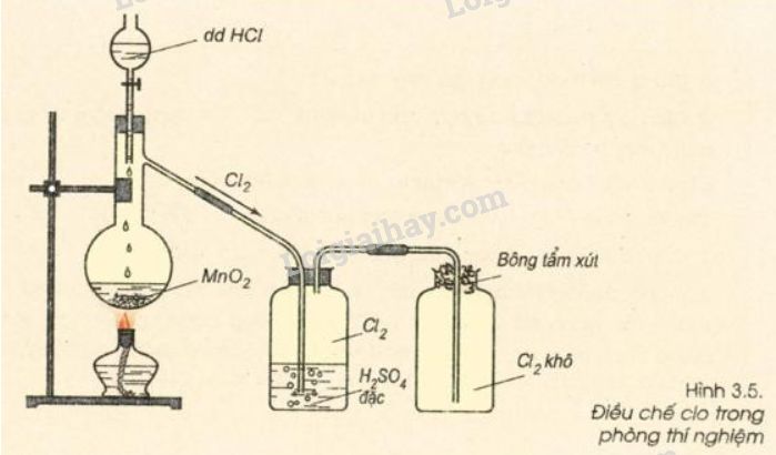 + Vai trò của H2S04 đặc là hút nước có lẫn trong khí clo, làm khô khí clo.