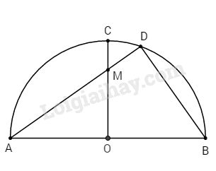 Cho nửa đường tròn (O) có đường kính AB = 2R. Vẽ bán kính OC vuông góc với AB, gọi M là một điểm nằm trên OC sao cho \(\tan \widehat {OAM} = \dfrac{3}{4}\), AM cắt nửa đường tròn tại D. Tính các đoạn AM, AD, BD theo R.