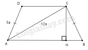 Cho hình thang \(ABCD\) có hai cạnh bên là \(AD\) và \(BC\) bằng nhau, đường chéo \(AC\) vuông góc với cạnh bên \(BC\). Biết \(AD = 5a\), \(AC = 12a.\)