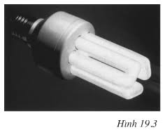 Một bóng đèn dây tóc giá 3500 đồng, có công suất 75W, thời gian thắp sáng tối đa 1000 giờ. Một bóng đèn compac (compact fluorescent lamp, hình 19.3) giá 60 000 đồng, công suất 15W, có độ sáng bằng bóng đèn dây tóc nói trên, thời gian thắp sáng tối đa 8000 giờ.