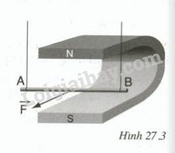 Áp dụng quy tắc bàn tay trái, xác định chiều dòng điện chạy qua đoạn dây dẫn AB trong hình 27.3.