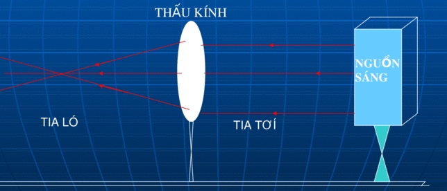 Trong ba tia sáng truyền qua thấu kính hội tụ ở hình 42.2, tia sáng ở giữa qua thấu kính truyền thẳng không bị đổi hướng.