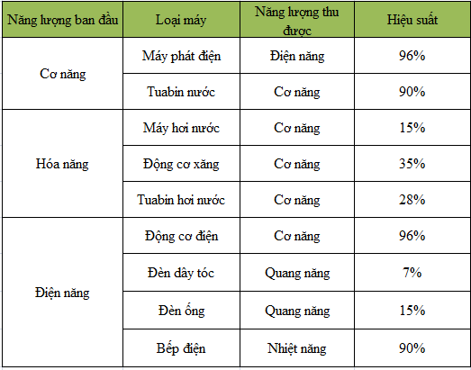 Xem bảng 1 và cho biết dùng động cơ điện và máy phát điện để thực hiện chuyển hóa năng lượng có lợi gì so với các máy khác.