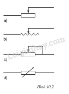 Trên hình 10.2 vẽ các kí hiệu sơ đồ của biến trở. Hãy mô tả hoạt động của biến