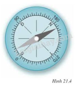 Người ta dùng la bàn (hình 21.4) để xác định hướng Bắc, Nam.  Tìm hiểu cấu tạo của la bàn. Hãy cho biết bộ phận nào của la bàn có tác dụng chỉ hướng. Giải thích. Biết rằng mặt số của la bàn có thể quay độc lập với kim nam châm.