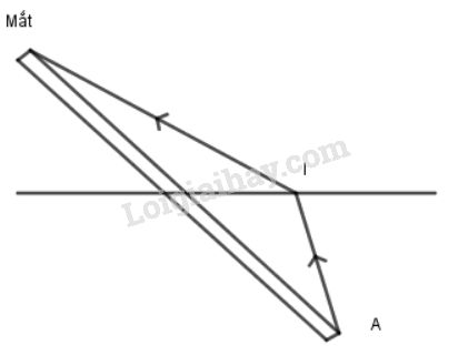+ Hình vẽ trên cho thấy không có tia sáng đi theo đường thẳng nối A với mắt. Một tia sáng AI đến mặt nước, bị khúc xạ đi được tới mắt nên ta nhìn thấy A. Thực ra người quan sát không nhìn thấy được đầu đũa A mà nhìn thấy ảnh của đầu đũa qua hiện tượng khúc xạ ánh sáng.