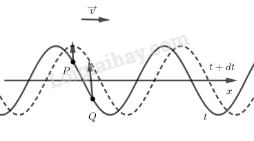 Dạng sóng trên dây tại thời điểm \(t\) (nét liền) và thời điểm \(t + dt\) (nét đứt)