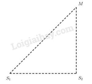 Hai sóng mặt nước phát ra từ hai nguồn \({S_1},{S_2}\) dao động cùng pha (Hình II.2). \(M\) là một điểm nằm trên đường cực tiểu giao thoa thứ hai. Hiệu đường đi \(M{{\rm{S}}_1} – M{S_2} = 4,5cm.\) Hỏi bước sóng bằng bao nhiêu?
