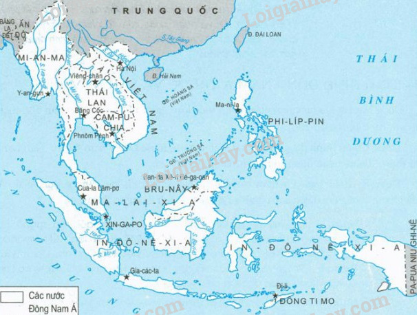 Khu vực Đông Nam Á gồm bao nhiêu nước? Hãy điền tên các nước vào lược đồ dưới đây: