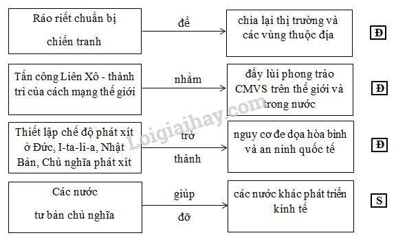 b) Các nước tư bản đã làm gì để tìm lối thoát ra khỏi khủng hoảng? Hãy ghi vào ô trống chữ (Đ) nếu câu trả lời đúng, chữ (S) nếu câu trả lời sai.
