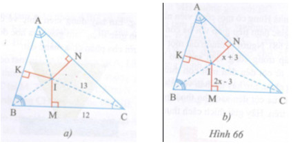 b) Hình 66b, biết IN = x + 3, IM = 2x – 3. Tìm x.