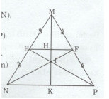 \(MF = PF = {{MP} \over 2}\)  (F là trung điểm của NP)