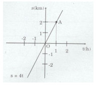 Đồ thị hàm số s = 4t là đường thẳng đi qua 2 điểm O(0; 0); \(A\left( {{1 \over 2};2} \right)\)