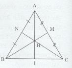 Do đó: ∆BMC = ∆CNB (c.c.c) \( \Rightarrow \widehat {HBC} = \widehat {HCB}\). Vậy ∆BHC cân tại H.