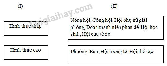 Giải bài tập 8 trang 69 VBT lịch sử 9: Hãy nối cột I hình thức tổ chức với cột II các tổ chức quần chúng