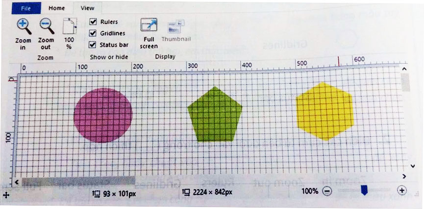 Vẽ các hình bên dưới đúng theo kích thước trên thanh Ruler như hình mẫu.
