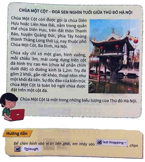 Từ bài thực hành số 1, em hãy sưu tầm thêm một bức tranh có nội dung về chùa Một Cột và đặt vào vị trí thích hợp.