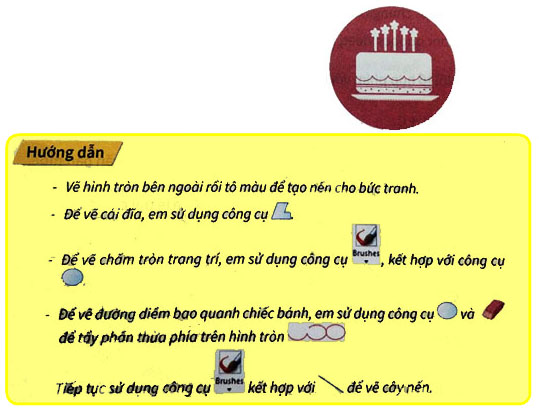 Giải phần bài tập vận dụng, mở rộng trang 39 sách bài tập Hướng dẫn học Tin học 4. Em hãy vẽ chiếc bánh theo mẫu để tặng mẹ nhân dịp sinh nhật mẹ…